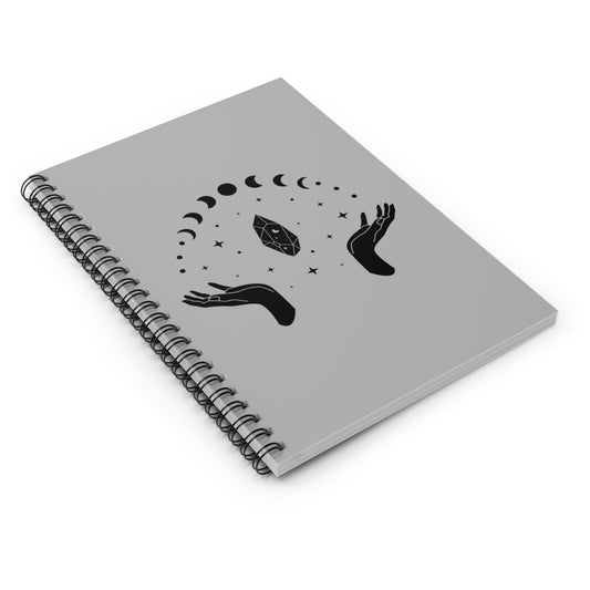 Hands W/ Moon Phases & Crystal, Spiral Notebook - Ruled Line