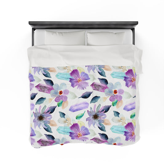 Crystals w/ Flowers, Velveteen Plush Blanket